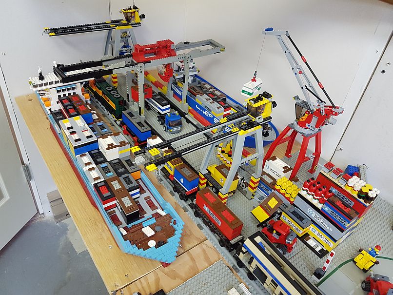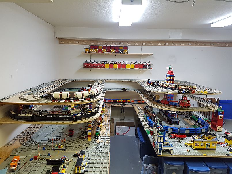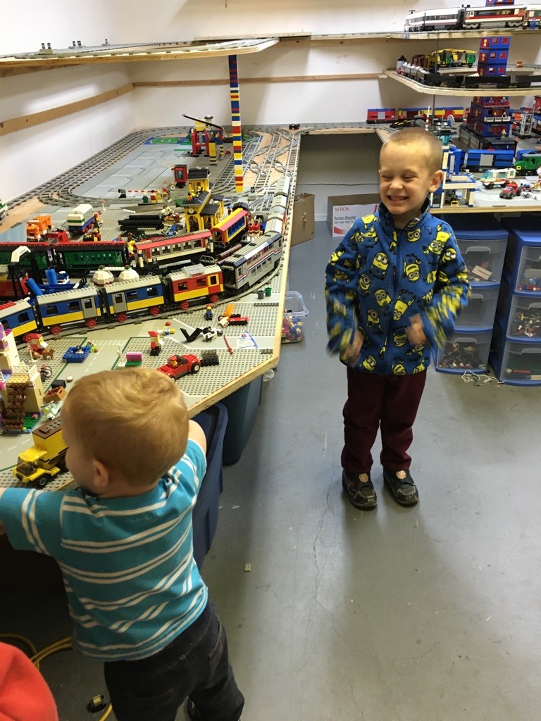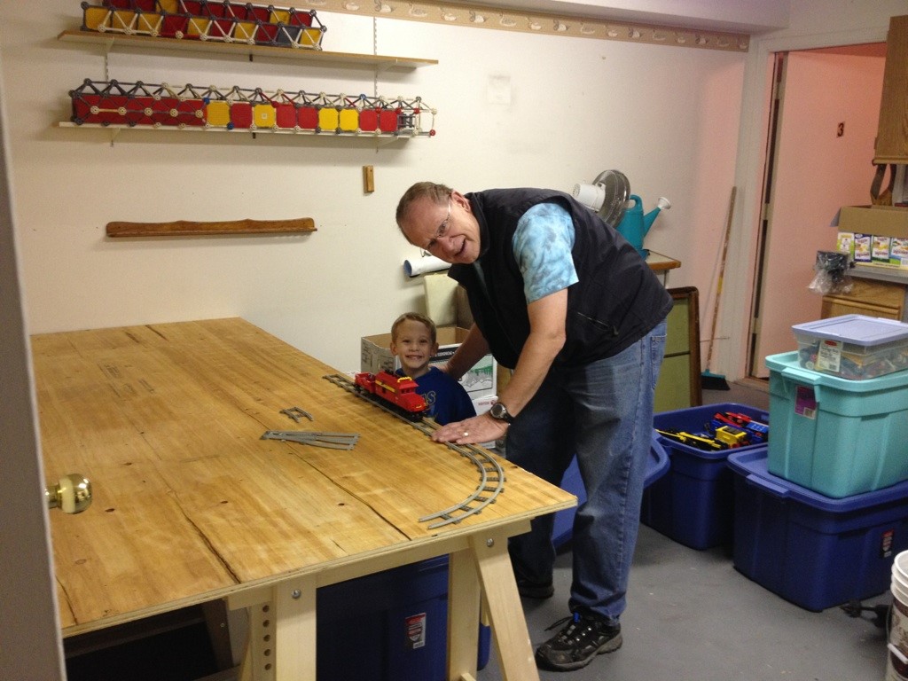 2015 – first order of business was starting the train set in the new “train room”.  first 4×8 sheet of 3/4 plywood.  WIth my grandson Morgan.